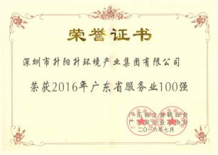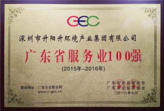 升阳升环境产业集团凭借大力实施创新驱动发展战略,积极发挥知名品牌带动和示范作用,持续提高发展质量效益,在目前大众创业、万众创新的大环境中争当排头兵,为广东经济实现又好又快发展做出的积极贡献,经专家委员会审定,荣膺2016年广东省服务业100强荣誉称号,荣获服务业100强的企业还有中国平安、南方电网、招商银行、碧桂园、南方航空、腾讯等知名企业。
