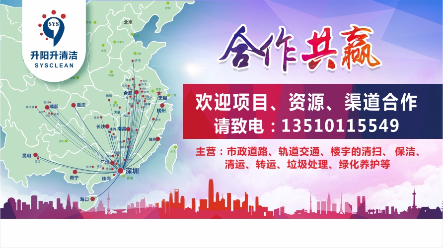 升阳升人居环境真挚邀请社会各界关心、爱护环卫事业的有志之士,以及环卫行业的朋友,与升阳升一起精诚合作,把环卫事业做大做强,实现合作双赢,为美丽城乡做出贡献!