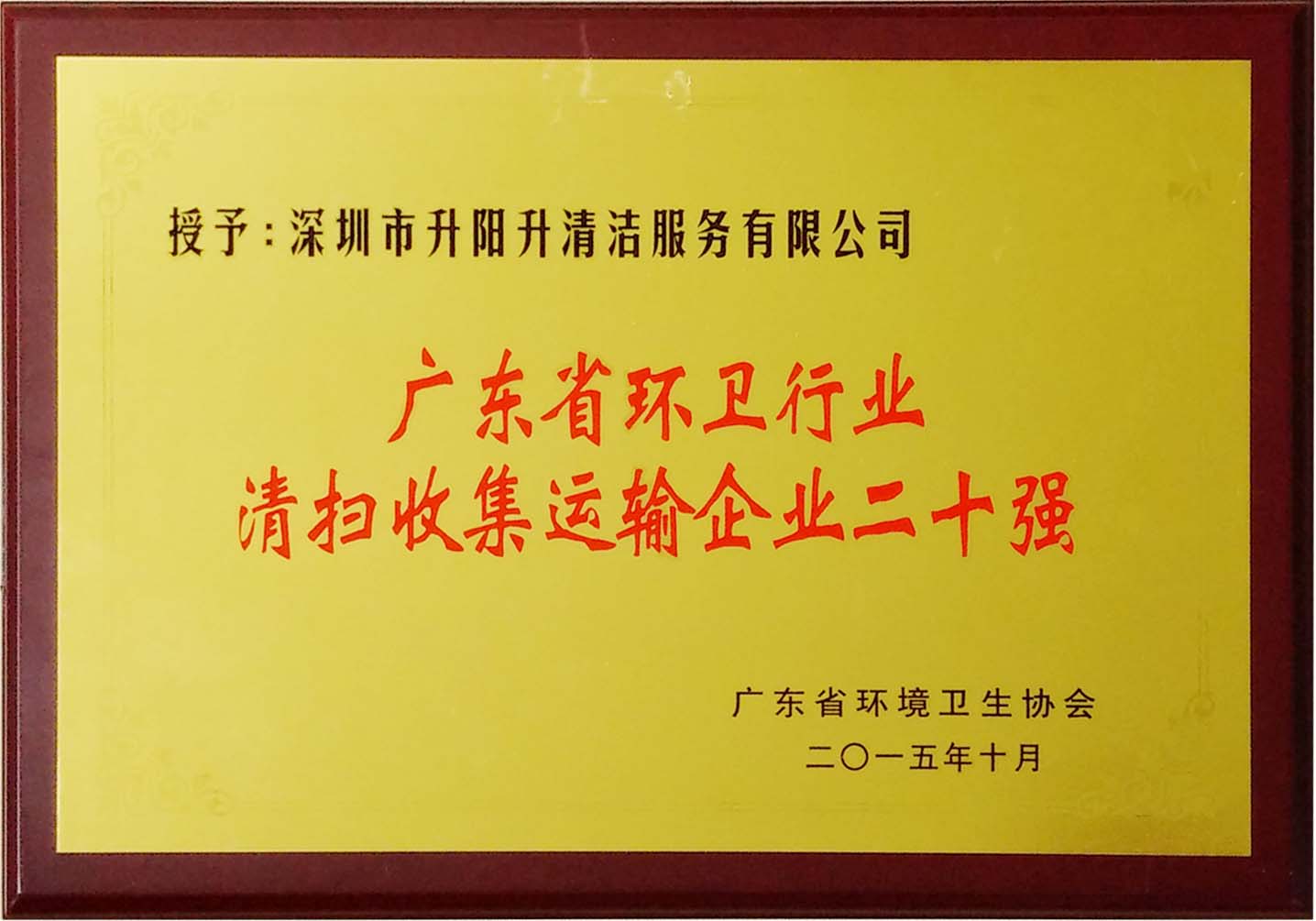 热烈祝贺深圳市升阳升环境产业集团名列广东环卫20强,荣获广东环卫服务一级企业、广东省环境卫生协会优秀会员单位称号