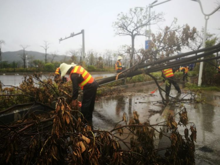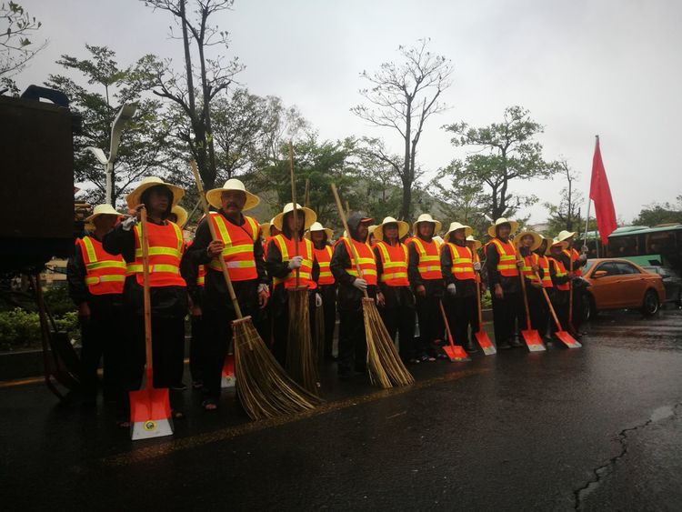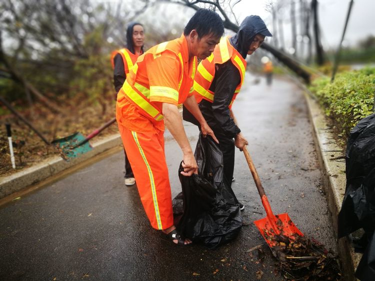 8月23日中午,台风“天鸽”在中国广东省珠海市登陆。城市一片狼藉,给当地造成了很强的破坏性和经济损失。珠海分公司冒着狂风暴雨始终在一线坚守岗位,台风过后,灾后现场严重,集团公司立即组织30名环卫应急工人火速支援帮助清理珠海横琴“天鸽”台风过后的垃圾,30名应急人员连夜从深圳赶到珠海横琴指定地点支援在一线现场。