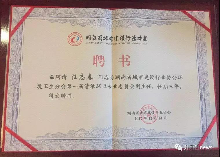 升阳升环境产业集团湖南分公司获湖南省城市建设行业协会环卫分会副会长单位!