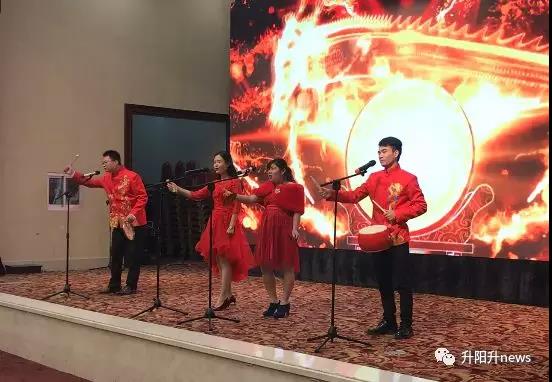 与此同时,升阳升清洁服务有限公司受邀参加了中南六省年会文艺汇演,总部行政管理中心佘彬海、严雪源、马微微、彭乾生(图片从左至右)带着升阳升对环卫工的关爱与关怀亮相舞台。在蓬勃朝气的音乐响起后,四位表演者以“鼓声”闪亮登场,以一首脍炙人口的三句半——“我为环卫点个赞”将看似琐碎平凡的环卫小事表现的充满生气与活力,获得了掌声无数。