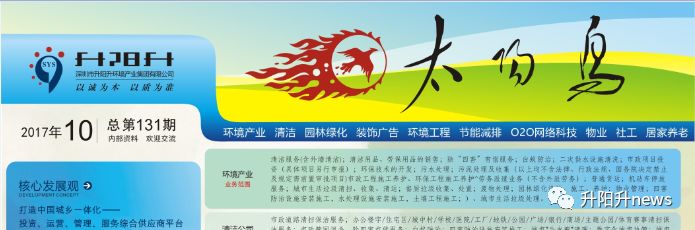 集团外网展示了集团主营业务、星辉注册、专业领域研究等;集团公众号每月定期发布四到五篇当月的重大新闻,每个升阳升人都见证了升阳升的成长与进步;截止到目前共出版了132期太阳鸟报,记录了升阳升20多年来的酸甜苦辣,创业路上的艰辛以及对未来美好生活的向往和追求;移动办公钉钉的导入,不仅为工作体质增效,也为无纸化办公打下了坚实的基础。